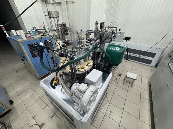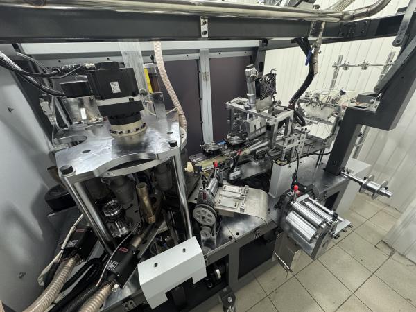 • Станок (второй слой) скорость 50 шт/мин с клеевой станцией Robatech (2 шланга. Склеивает заготовку и сам стакан с заготовкой) + приемный стол. (Год производства станка - 2026,январь)