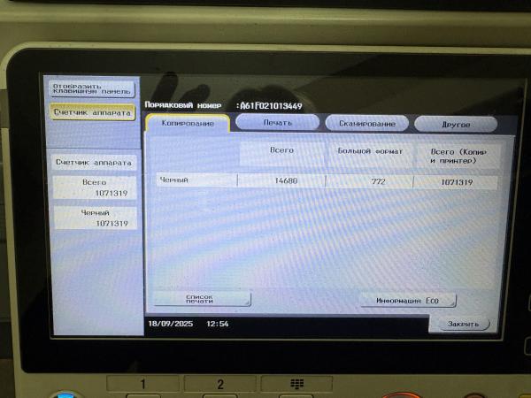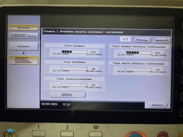 В рабочем состоянии, требует замены расходников. Есть небольшие дефекты печати