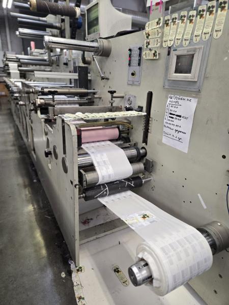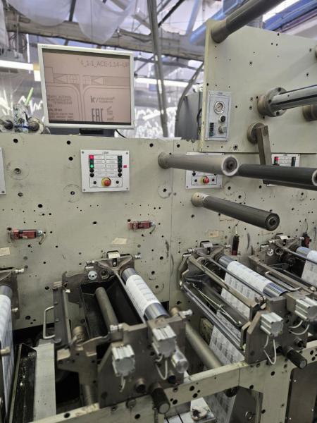 Узкорулонная печатная машина для печати самоклеящихся этикеток.