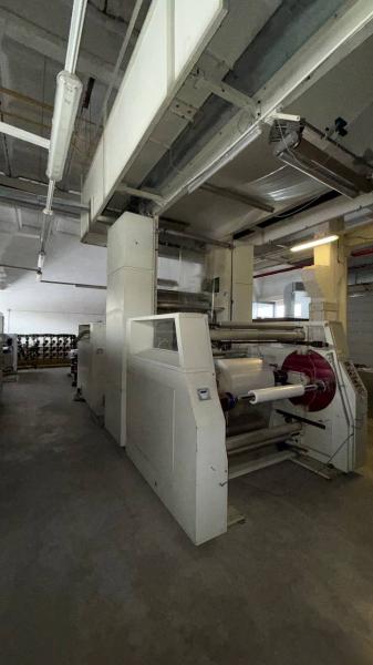 Скорость печати 20-400 м/мин, ширина печати до 1220 мм, материал до 1250 мм. Максимальный рапорт печати до 1000 мм. Привод - шестерни, подача краски через насосы, закрытая ракельная система. Тип краски: спиртовой и водной основы. Большой комплект формных гильз, комплект анилоксовых керамических гильз 14 штук. Машина оснащена видеосистемой контроля совмещения, узел размотки и намотки, система равнения полотна. Бабинорезка в составе машины. Газовые сушилки. Флексографическая машина производства Италия, находится в городе Оренбург.