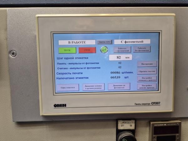 В 2018 году модернизирована система управления шаговым приводом - установлена сенсорная панель с самообучающейся системой для работы оптического датчика по контрастной метке или элементу изображения, увеличена скорость работы станка.