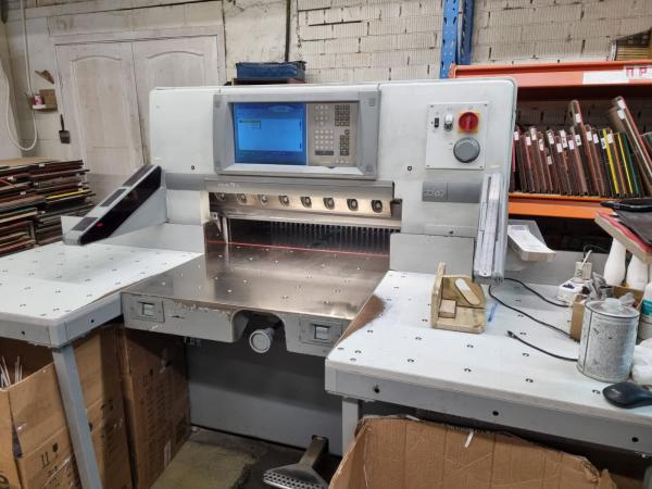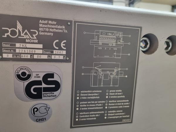 Резак Polar 78X, 2007 года, состояние как есть, широкие столы с двух сторон. 4 ножа в комплекте.