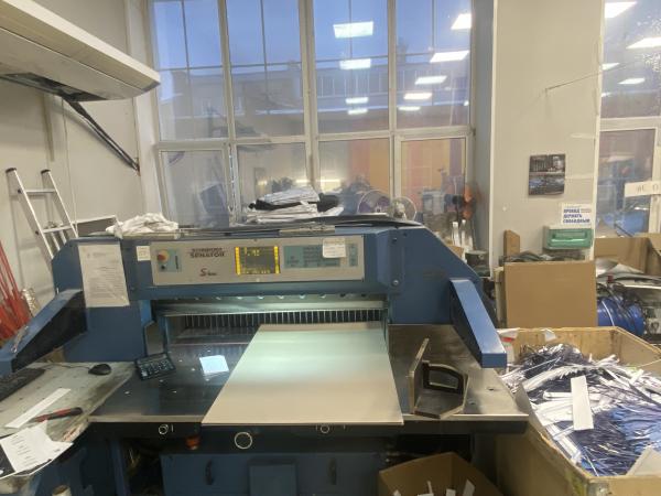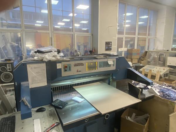 Продается одноножевая бумагорезательная машина Schneider Senator 115 серии S-Line с полностью гидравлическим приводом реза шириной до 1150 мм.
