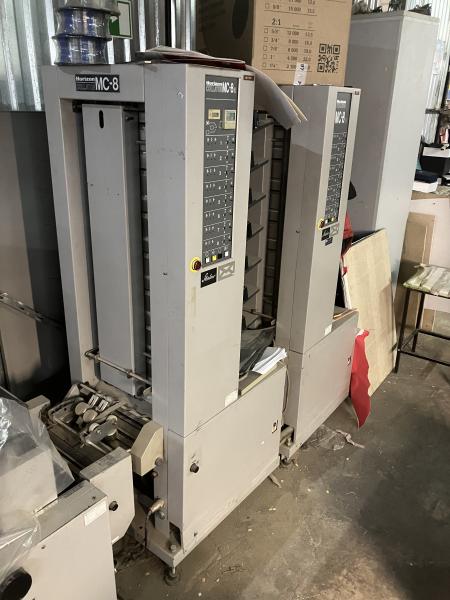 Листоподборочная линия Horizon MC-80a + MC-80c ( 16 лотков, вакуум) с модулем фальцовки/прошивки проволокой SPF-10 и модулем подрезки по торцу FC-10.