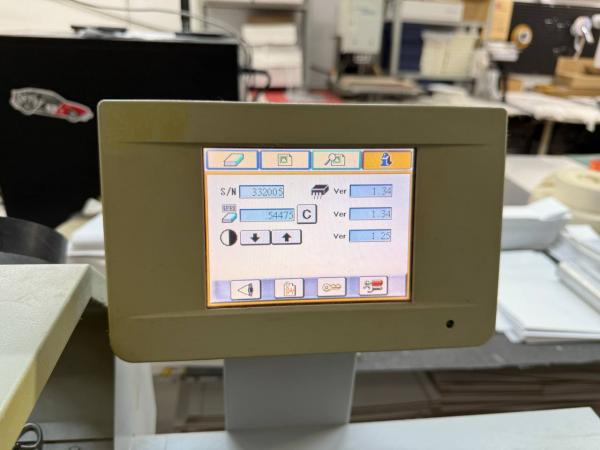 Простая и надёжная клеевая секция равномерно, с заданной глубиной проникновения наносит клеевой слой на корешок блока. Обжим корешка выполняется автоматически, в конце рабочего цикла. Центральный пульт управления с цветным контактным дисплеем оснащается графическим интерфейсом для управления всеми основными функциями наладки на текущий тираж.