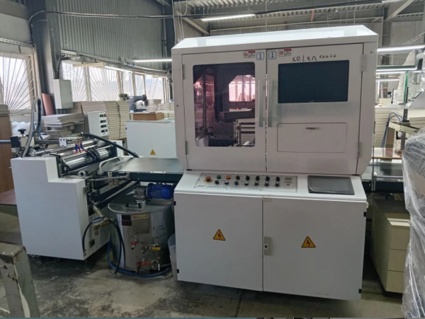 Клеемазательная машина с автоподачей лайнера, конвейер, автоматическая подача сторонок, система позиционирования с роботом