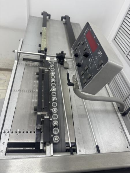 Перфорация + биговка. Размер листа 150*120 - 640*450 мм. До 30000 листов в час. Плотность бумаги 45-240 гкв./м. Размер машины 191*79*146 см, вес 177 кг. Данная машина широко используется для фальцовки различных печатных изделий, включая упаковку, брошюры, инструкции, газеты, журналы, проспекты и.т.д. В отличном состоянии.