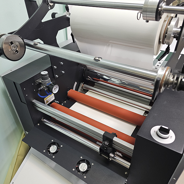 DIGITIZER-390S полу-автоматический одно-сторонний рулонный ламинатор для цифровой лазерной печати с гидравлический прижимом и автоматическим обрывом.