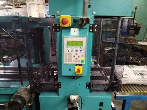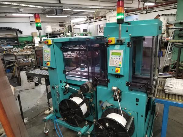 Автоматическая стреппинг линия Mosca RO-TRI-4, RO TR500 2002, для обвязки продукта крест на крест без поворота, полипропиленовая лента ширина 8мм, Габариты продукции: шарина 450мм, высота 450мм, длинна 600мм максимальные