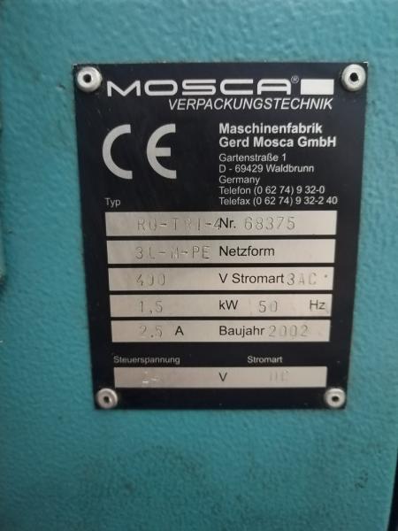 Автоматическая стреппинг линия Mosca RO-TRI-4, RO TR500 2002, для обвязки продукта крест на крест без поворота, полипропиленовая лента ширина 8мм,
