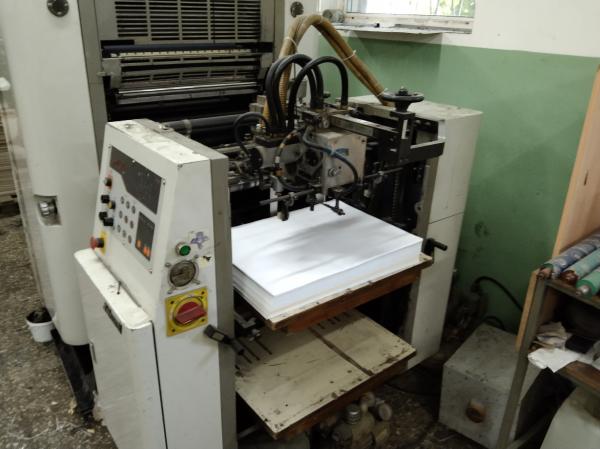 Макс. формат листа 570х440мм. Мин. 257х182мм. Макс. запечатывания поверхность 570х440. Скорость печати от4000 до 12000 Отт/час.толщина запечатываемого материала от 0,04 до 0,4 мм. Высота стапеля самонаклада 580 мм, приемки 350мм. Размеры 2154х1309х1687( д.ш.в.) Вес 2500кг. Потребляемая мощность 4,5 кг. 380в. Увлажнение Бербек. Какой-то ЗИП.Есть новые валы. Инструкции и схемы на русском языке.