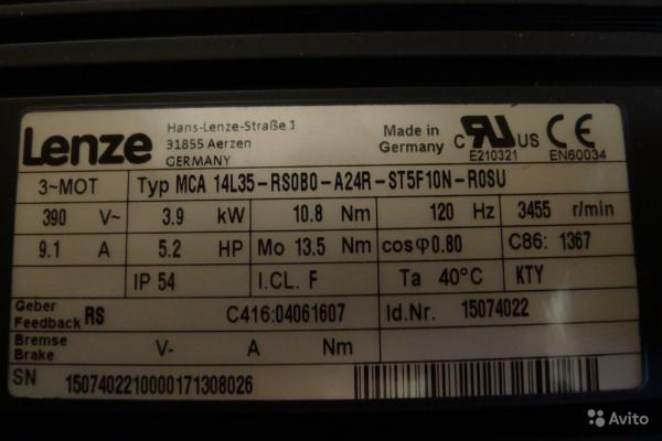 Серводвигатель Lenze мса14L35 3.9 kW новый