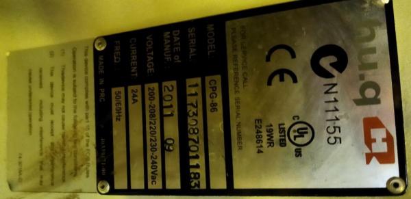 Модель CPG-86, 220В, 24А. Холодильник встроен. Есть и запчасти, и сервис в РФ. Состояние хорошее. Выведен из эксплуатации по приобретению новой линии.