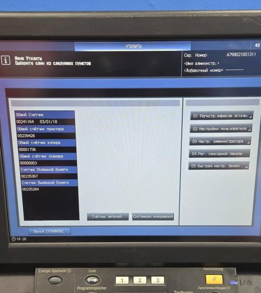 Общий счетчик А3: 241 164, состояние новой машины. Аппарат прошел проверку и сервисную подготовку, установлены новые узлы: