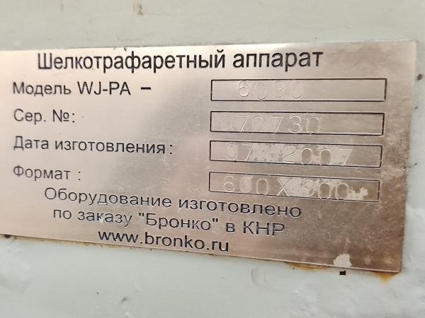 Полуавтоматический шелкотрафаретный станок WJ-PA 6090 для одно- и многокрасочной печати печати для бумаги, картона, пленки, пластика, стекла. Оснащён вакуумным неподвижным столом и угловым подъёмом рамы для точной фиксации и высокого качества печати. Производительность до 1100 циклов в час, регулируемое давление и угол соскабливания.