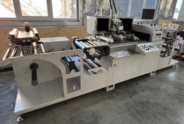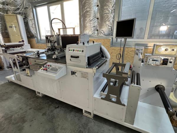 Сочетает в себе: устройство приема и подачи материала, УФ-сушилку, а также устройство трафаретной печати, название которой: однокрасочная машина трафаретной печати с намоткой и размоткой материала. Данное оборудование состоит из: главного оборудования, двух электронных УФ-ламп и коронатора.