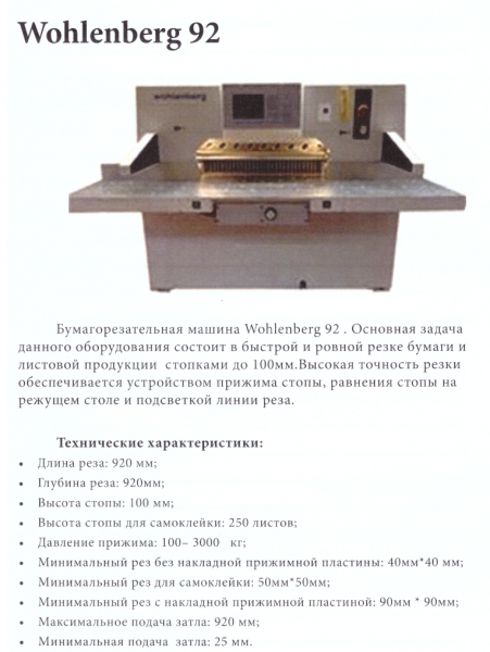 Высокоскоростная бумагорезальная машина WOHLENBERG CUT-TECH 92