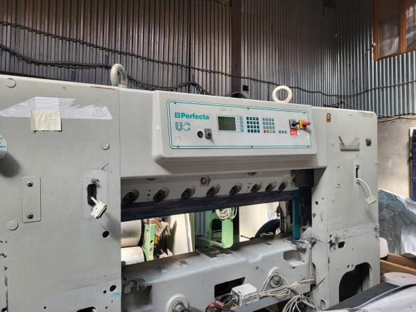 Одноножевая бумагорезальная машина.Длина реза 115 см.Оснащена встроенным паллетоподъемником.