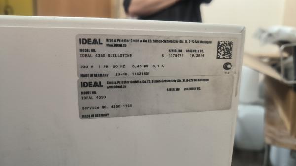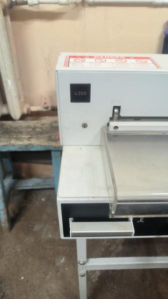 Резак гильотинный Ideal 4350. А3, длина реза 430 мм., высота стопки 40 мм, электрический прижим стопы. Цифровой дисплей.