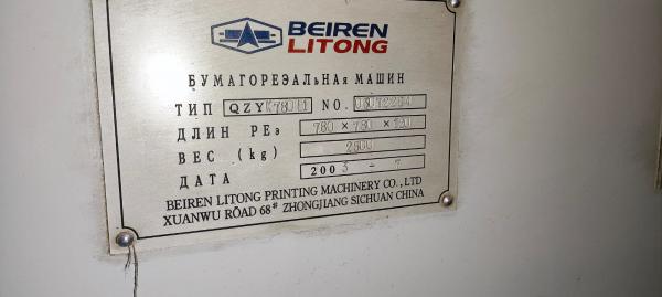 Бумагорезательная машина Beiren Litong QZYK 780 L1, 2003 г.в.