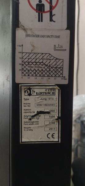 Продам штабелер ручной гидравлический НАСТОЯЩИЙ НЕМЕЦ Гидравлика не течет,работает цетко,поднимает и держит вес Грузоподьемность 1000 кг ,длина вилл 1150 мм, высота подьема 1.6 м Использовался на пр-ве нечасто