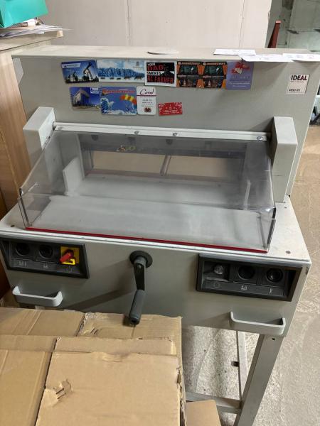 Резак гильотинный Ideal 4850-95. производство Германия. Автоматический прижим и электрический привод реза.