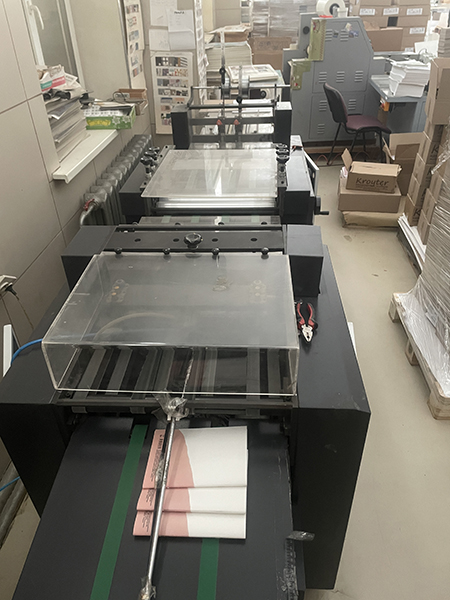Брощюровщик на скобу (две головы Хохнер), очень хорошая машина, шьет блок проволокой, далее фальцует, обжимает, и подрезает, удобная настройка, машина очень хорошая в работе, без заморочек как хорайзен, минимум электроники. Работает без сбоев не капризная. Можно делать изделия А4, А5 на двух скобах и А6 на одной скобе. К нему есть подборщик Тайсон Бониц, на нем подбирали блок с обложкой, если надо отдадим и его. На производстве, можно посмотреть и потестить.