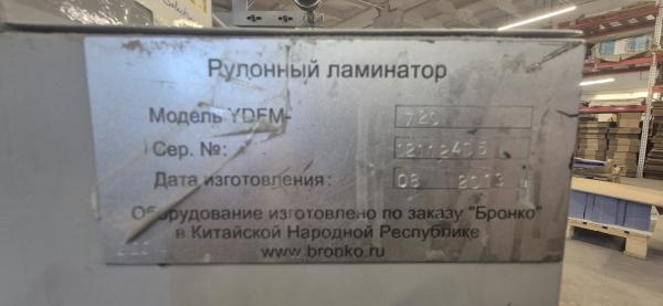 Продажа рулонного ламинатора YDFM 720 2013 г.в. Хорошее рабочее состояние, больше года стоит для резерва. Стоимость без НДС. (ИП). Находится в Санкт-Петербурге.