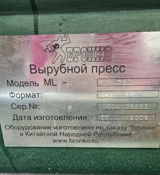 Продается вырубной пресс БРОНКО 804175063 ML750. В хорошем рабочем состоянии. Осенью 2025 г. провели полное ТО.