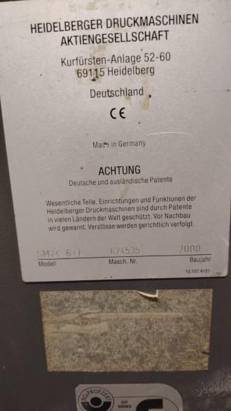 Офсетная печатная машина Heidelberg SM 74-6+L, 2000 г.в., 164 млн, 6+лак, лак - валковый, темперирование, автоплейд, смывки все автомат