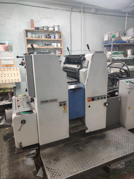 - 2-х красочная Печатная машина Ryobi 522 HX. 2003 г.в. В отличном состоянии. Готова немедленно к продаже. Ухоженная машина. Все работает без проблем. Своевременно производился текущий ремонт. Стоимость 990 тыс. руб.