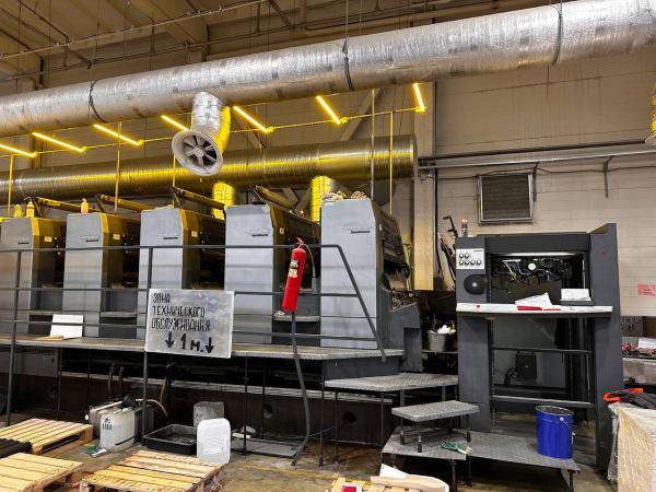 Машина переделана сотрудниками Heidelberg для работы с УФ красками. В отличном состоянии, не требует ремонта. Работает и производит продукцию каждый день.
