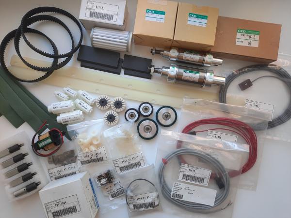 В наличии присоски для различных видов бумаг, отсекатели двойного листа, пружинки для утройства бокового равнения, транспортные ленты самонаклада, смывочные (ракельные) ножи, фильтр-мешки для рецеркулятора, фильтра,лопатки, ремни и подшипники для компрессоров, различные датчики контроля листа, концевые выключатели, индуктивные датчики цикла, пневмоцилиндры, фильтр-глушители, пневмораспределители различных модификаций и прочие запчасти и расходные материалы для полиграфического оборудования.