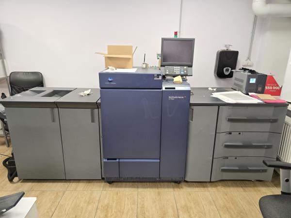 Продается б/у оборудование цифровой типографии одним лотом в составе цветный машины Konica Minolta C3070L, Konica Minolta С1100, ч/б OCE 1105 Широкоформатный принтер Epson 9890 Konica Minolta С224e Постпечатное оборудование Клеевая машина DB-200 Резак ideal 6550-95 Ручной резак А3 Ламинатор А3 Биговщик DC-445 резчик блоков Renz SRW 360 -2 шт Буклет мейкер DBM-120 Сверлильный станок Катер Минимак 1,5 метра Ручной резчик широкоформатных рулонов 4 компьютера для управления машинами Стеллажи металлические 4 шт