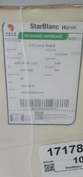 Картон упаковочный 255гр, StarBlanc. 4800л. 56000руб.поддон. В наличии 2 поддона.