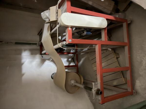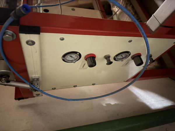 На станке установлена пневматическая тормозная муфта для исключения проворачивания исходного рулона после останова электродвигателя и провисания материала и обеспечения натяжения материала в процессе перемотки.